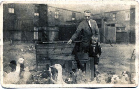and his son Matthias in the yard at Empringham Street |